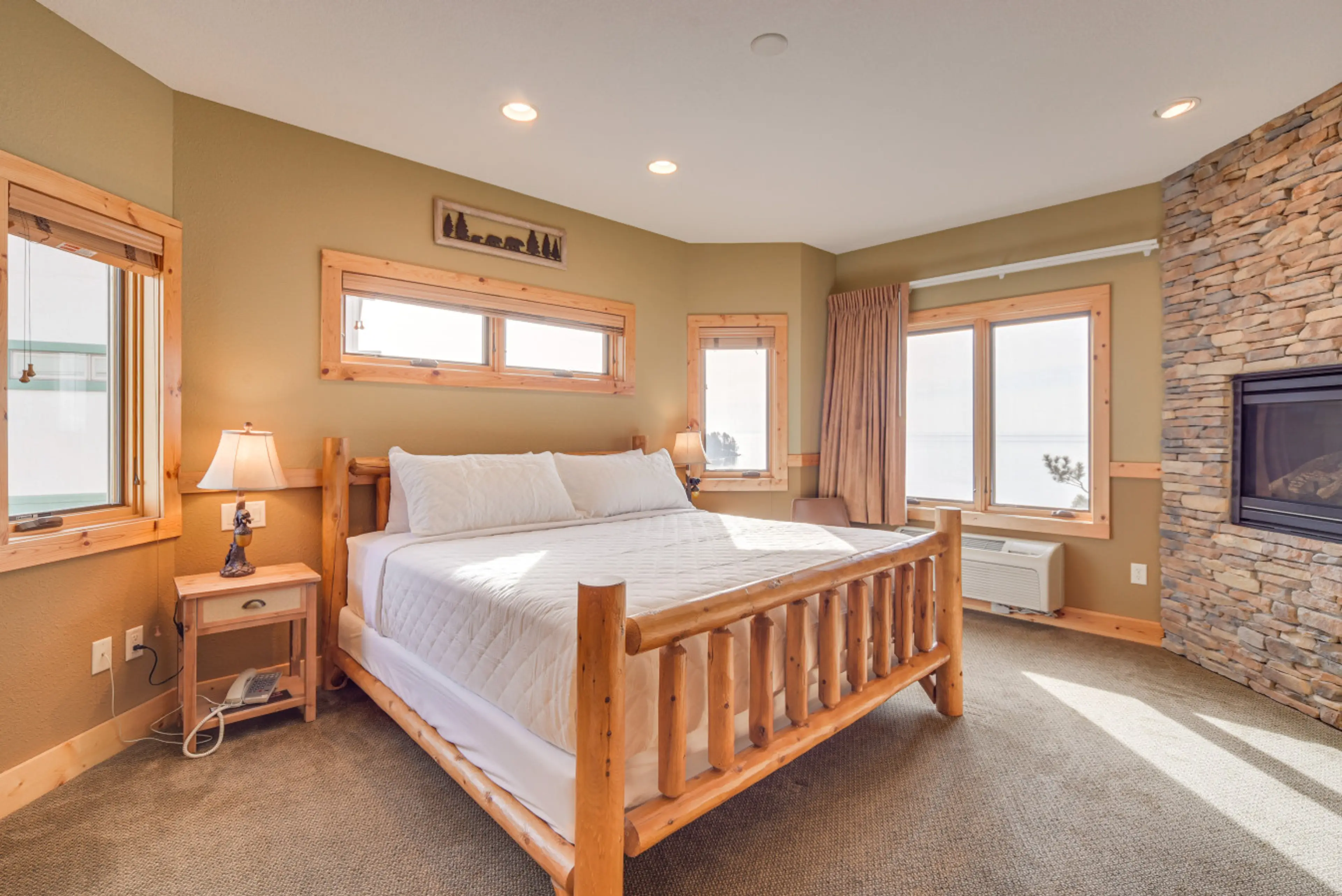 Wake up to sunrises over Lake Superior and fall asleep to waves outside your window in this 4th-floor corner condo. Waterfront unit with 3BR/3BA, 2 jetted tubs, 3 fireplaces, & space for 8 - it’s perfect for families, friends, or your pup. Enjoy a balcony with epic views plus resort perks — pool, sa...